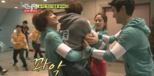 Pada 1 Januari 2012, f (x) Sulli, Wonder Girls Sohee, SHINee Minho, Suju Siwon, dan Sistar Hyorin muncul di acara Running Man sebagai bintang tamu. Di episode ke 75 ini Empat tim terbentuk antara para tamu dan pemain inti Running Man. Anggota tim tersebut berupa: Sulli bekerja sama dengan Haha dan Gary, Minho dan Siwon bersama Song Ji Hyo, Kwang Soo bersama Hyorin dan Suk Jin, serta Sohee yang satu team dengan Yoo Jae Suk dan Kim Jong Kook.